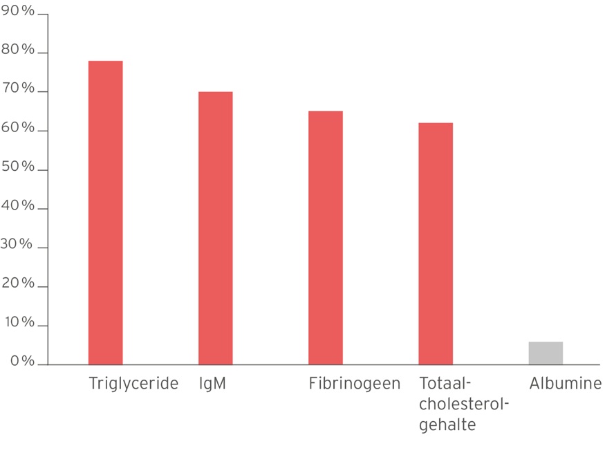 De DFPP met het ER-4000 rheofilter verwijdert efficiënt en selectief triglyceriden, grote plasma-eiwitten zoals immunoglobuline M en fibrinogeen en totaal cholesterol. Albumine blijft vrijwel onaangetast.